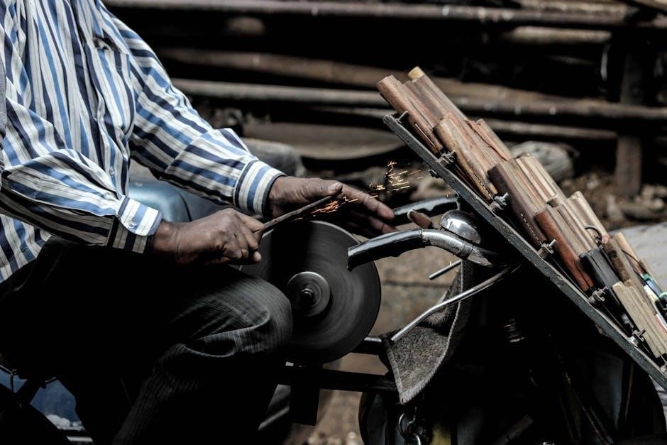 Beyond angle guides and sharpening stones, several other tools are crucial for effective knife sharpening. A sharpening jig or clamp helps stabilize the knife, ensuring precise control. Strops, made of leather or canvas, are used for final polishing, removing minor imperfections. Honing steels, often mistaken for sharpeners, realign the blade’s edge, maintaining sharpness. Cleaning cloths are essential for wiping away metal particles and residue during the process. Additionally, a consistent workspace with proper lighting is vital for visibility. These tools collectively enhance the sharpening experience, ensuring a sharp, durable edge. While the angle guide and stone are central, these accessories refine the process, making it more efficient and effective. Together, they help achieve professional-level results, whether for culinary, outdoor, or everyday use.