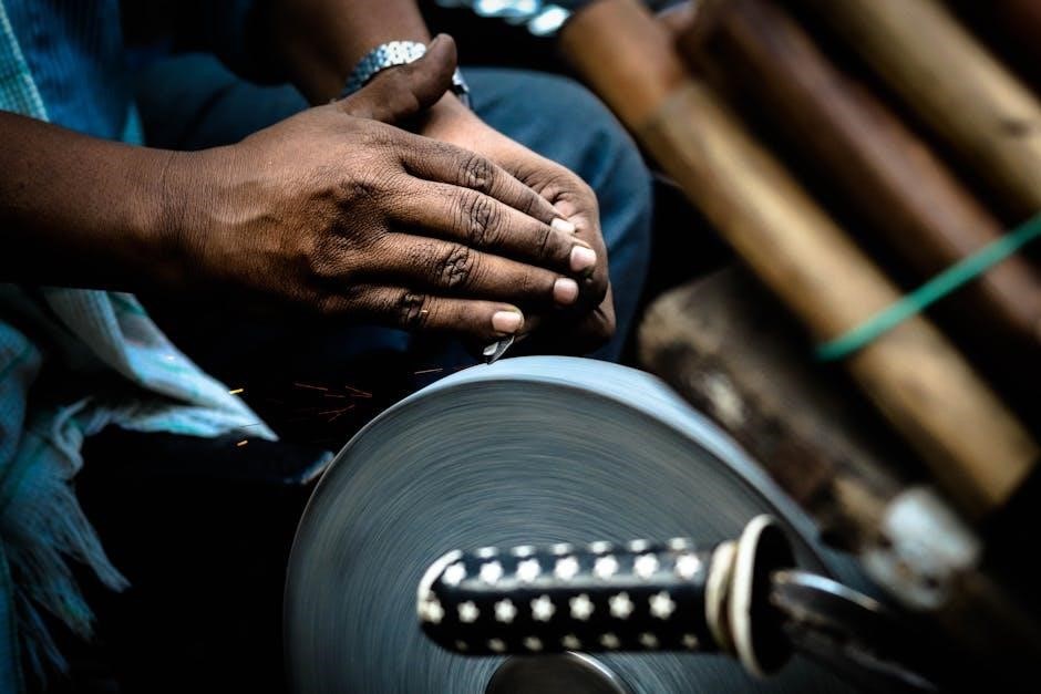 Maintaining the sharpening angle is crucial for consistent results. Use an angle guide to ensure accuracy during each stroke. After sharpening, check the angle with a marker or gauge to verify consistency. Regularly hone the knife with a steel to preserve the edge without altering the angle. For long-term maintenance, periodically re-sharpen the knife at the same angle to prevent edge degradation. Store the knife properly to avoid accidental dulling; By adhering to these practices, you can maintain the desired sharpening angle, ensuring the knife remains sharp and functional over time. Proper maintenance not only extends the blade’s lifespan but also enhances its performance in various tasks. Consistency is key to achieving and preserving a razor-sharp edge with the correct angle.
